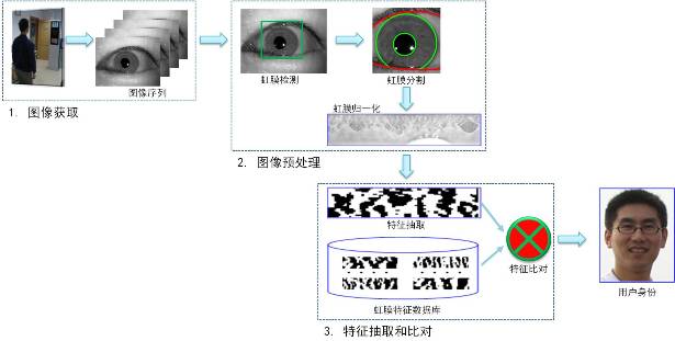 圖2 虹膜身份識(shí)別系統(tǒng)基本流程